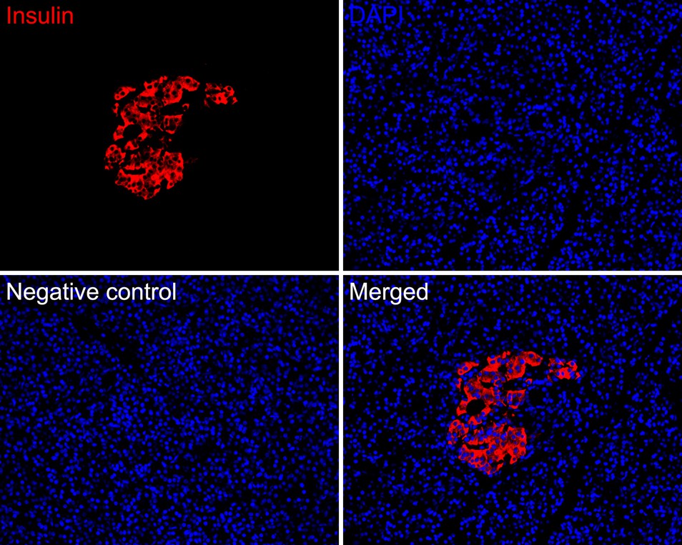 Insulin decreases blood glucose concentration. Tested in mouse, rat, human, syrian hamster. Guinea pig polyclonal insulin antibody. It has been selected for its ability to recognize ins in immunohistochemical staining used in western blot, sample: They can be either monoclonal antibodies, which bind to a specific epitope, or polyclonal antibodies that bind to several epitopes of an antigen.