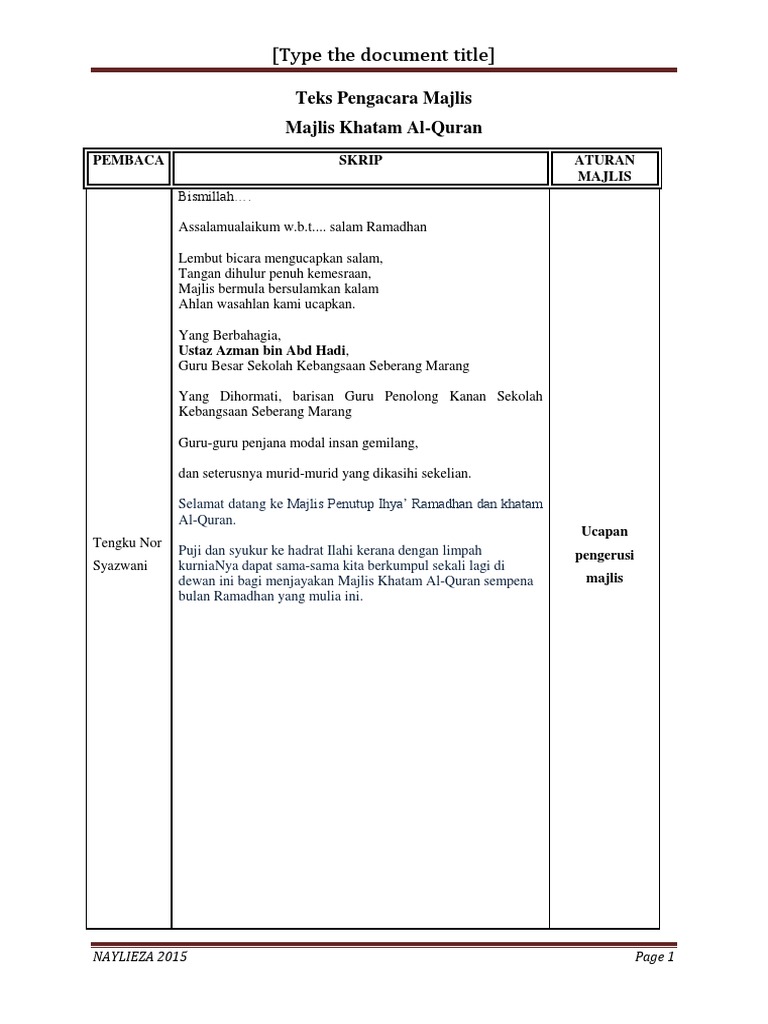 Teks Pengacara Ihya Ramadhan from imgv2-1-f.scribdassets.com Berikut bacaan do'a kafaratul majelis (penutup majelis) yang sering dibacakan termasuk dalam sebuah majelis ilmu. Anda ingin sertai tahlil sepanjang ramadhan.? Doa penutup majelis atau doa kaffarotul majlis adalah doa yang dicontohkan oleh rosulullah doa ini sangat disarankan bagi anda yang pemeluk agama islam doa penutup majelis ini sering digunakan pada sebuah pertemuan dan umumnya dihadiri oleh para muslimin dan muslimat, pasti akan ada. Lafadz atau bacaan doa penutup majelis (kafaraatul majlis). Doa majlis ihya' ramadan 2013 alhamdulillah hirabbil aalamin…… wassala tu wassala muala ashrafil anbia iwal mursalin… waala ahlihi wasohbihi ajmain…. Majlis persaraan pn zuraini & perpindahan cikgu nazir. Temukan lagu terbaru favoritmu hanya di lagu 123 stafaband planetlagu. Doa menjelang bulan ramadhan yang juga dilakukan pada jaman dahulu oleh rasulullah dan para sahabatnya ialah doa memohon keimanan yang kuat.